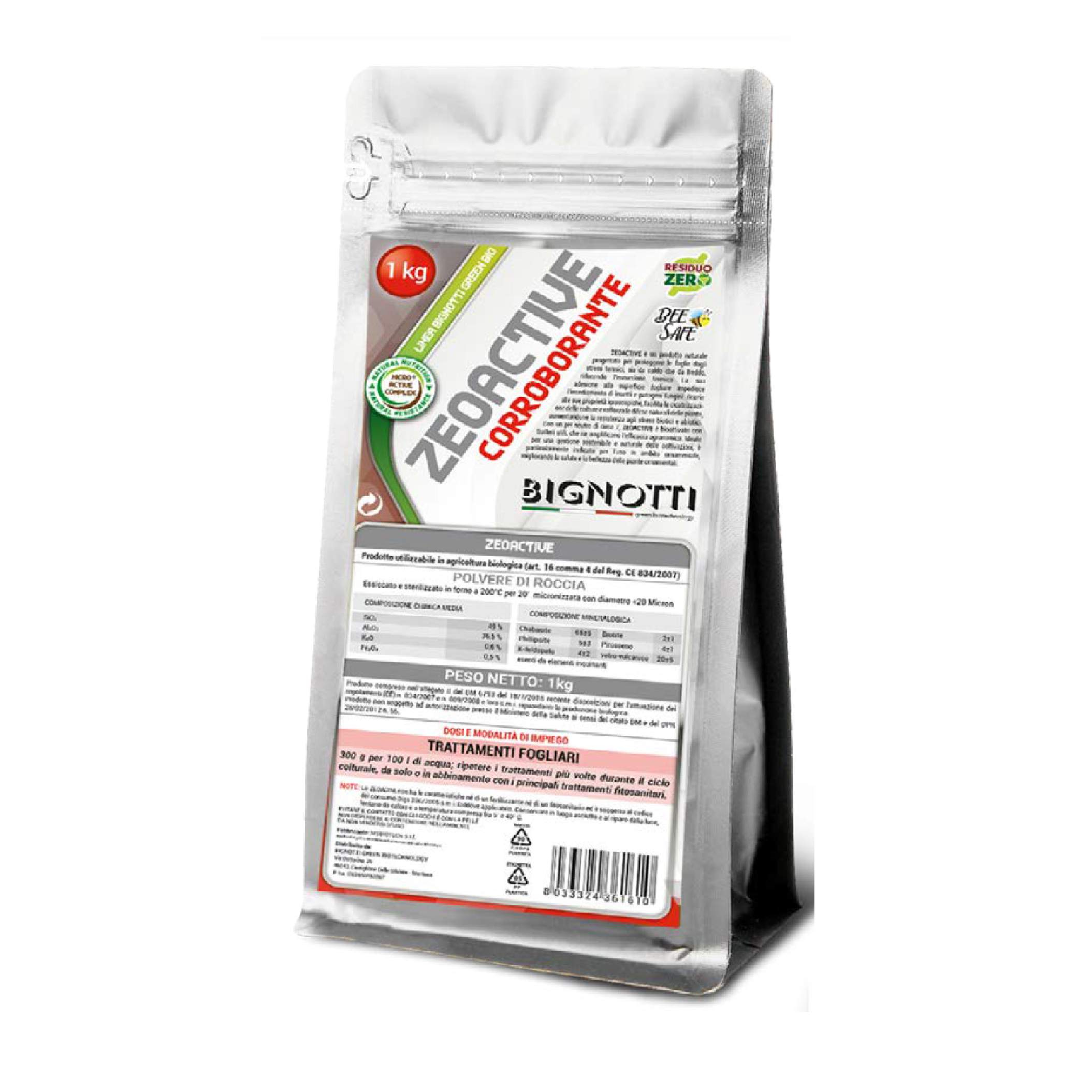 ZEOACTIVE è un prodotto nato per proteggere le foglie dagli stress da calore e da freddo, riducendo l’escursione termica. Aderendo alla superficie della foglia, rende impraticabili gli attacchi di insetti e patogeni fungini. Grazie alla sua capacità igroscopica, facilita le cicatrizzazioni delle colture. E’ un potenziatore delle difese delle piante. Sostanza di origine naturale che migliora la resistenza delle piante agli stress biotici ed abiotici. Il pH è neutro, circa 7.